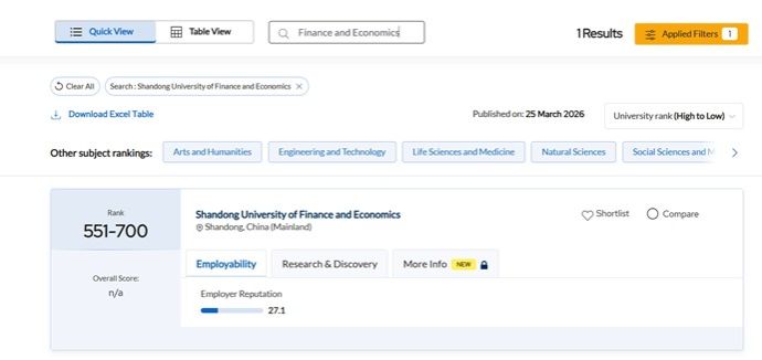 3月25日,英国国际高等教育研究机构 Quacquarelli Symonds(简称QS)正式发布2026QS世界大学学科排名。中国内地高校共有157所上榜,山东高校共有6所上榜(其中省属高校3所)。我校经济与计量经济学成功上榜,位列全国高校第45名、财经类高校第9名,实现我校在QS世界大学学科排名的重大突破。